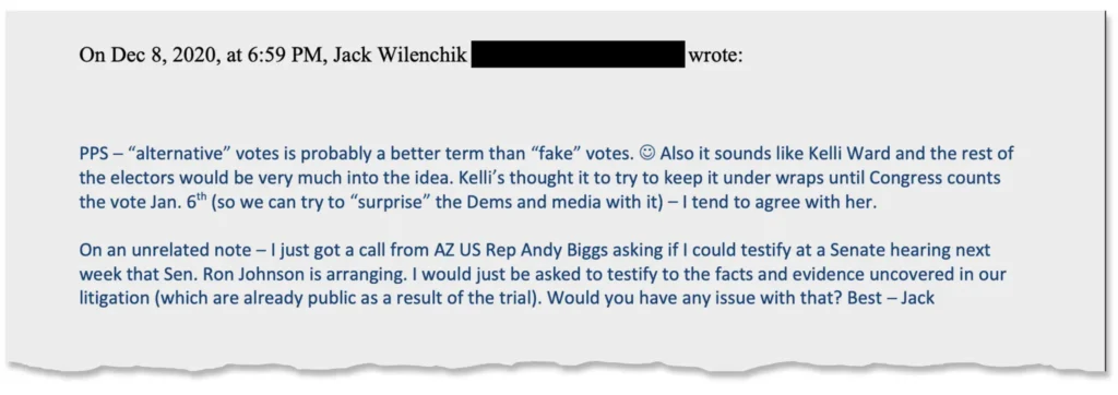 The only one who was trying to seize and consolidate power was Trump himself. Together with John Eastman and Kenneth Chesbro, he conspired to substitute fake slates electors in place of the official ones and tried to pressure Mike Pence to count these fake slates. And Trump pressured official in swing states that he lost to change the outcome of the election, most memorably his January 2nd telephone call to Georgia Secretary of State Brad Raffensperger to “find 11,780 votes” that he knew and was did not exist. As I said in my book, this is the clincher that Trump knew he had lost. How could he honestly claim the election was lost when, by his own admission, he hadn’t found the margain of votes he needed to win by one?